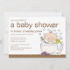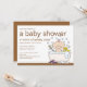 Bonita figura de baquinha num convite para chá de fraldas de banheira. Design apresenta a menina mais bonita sentada numa banheira com um pato amarelo e bolhas de sabão. Correspondência de selos e autocolantes disponíveis em nosso compro