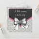 Cor-de-rosa elegante e preto com arco rosa negro, convite de chá de fraldas da princesa da menina. Este adorável convite para chás de fraldas rosa e preto damask é facilmente personalizado para o seu evento, simplesmente escolhendo o botão "Personalizar!" para começar a adicionar os detalhes do seu evento, estilo da fonte, tamanho da fonte e cor e texto. Observe que todos os designs de convite que você encontrará no Zazzle são gráficos impressos sem joias reais, arcos, levantados, gravados em relevo ou peças ou peças adicionadas.