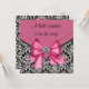 Cor-de-rosa elegante e preto com arco rosa negro, convite de chá de fraldas da princesa da menina. Este adorável convite para chás de fraldas rosa e preto damask é facilmente personalizado para o seu evento, simplesmente escolhendo o botão "Personalizar!" para começar a adicionar os detalhes do seu evento, estilo da fonte, tamanho da fonte e cor e texto. Observe que todos os designs de convite que você encontrará no Zazzle são gráficos impressos sem joias reais, arcos, levantados, gravados em relevo ou peças ou peças adicionadas.