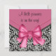 Cor-de-rosa elegante e preto com arco rosa negro, convite de chá de fraldas da princesa da menina. Este adorável convite para chás de fraldas rosa e preto damask é facilmente personalizado para o seu evento, simplesmente escolhendo o botão "Personalizar!" para começar a adicionar os detalhes do seu evento, estilo da fonte, tamanho da fonte e cor e texto. Observe que todos os designs de convite que você encontrará no Zazzle são gráficos impressos sem joias reais, arcos, levantados, gravados em relevo ou peças ou peças adicionadas.