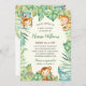 Este doce convite de chá de fraldas da selva apresenta macacos pintados manualmente bonitos e folhas tropicais de aquarela. A design neutra do gênero funciona para chás de bebês, chás de bebês, ou chás de fraldas onde o gênero é um mistério! Use o modelo para personalizar facilmente suas informações de chá.