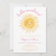 Este belo convite de chá de fraldas é decorado com uma aquarela e diz Hello Sunshine! em tipografia de na moda cor-de-rosa. Perfeito para o chá de uma menina. Facilmente personalizável. Original Watercolor © Michele Davies.