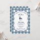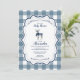 Comemore no estilo aconchegante do inverno com este charmoso convite para chás de fraldas. Uma doce rena aquática fica no centro de um clássico fundo de xadrez azul, enquadrado por um rótulo escalpado com talo de safra — perfeito para receber um menino durante o feriado.