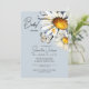 Convite para chás de fraldas. Disies e borboleta de fundo azul poeirento.
