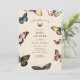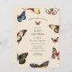 Bonito convite para Chás de fraldas com borboletas e mariposas. Personalize com suas informações ou clique em "Clique para personalizar mais" para editar estilos de fonte, tamanho e cores.