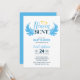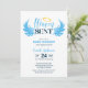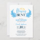 Celebre a chegada de um pequeno com este doce e charmoso convite de chá de fraldas do Céu Enviado. Apresentando adoráveis asas azuis e um halo ouro, este design é perfeito para a celebração de um menino.