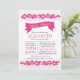 Comece seu chá de fraldas com nosso convite para chás de fraldas-chuva moderno. Nosso na moda e nossa atual chá de amor e convite de melhores desejos apresenta uma fileira de guarda-chuvas cor-de-rosa para um chá de fraldas feminino com um banner contemporâneo sobre um fundo branco nítido. Sacudir o convite para encontrar um pergaminho correspondente para um toque especial extra.