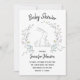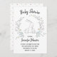 Este design de coelhinho meigo é perfeito para o seu chá de fraldas quando a mãe está esperando gêmeos! A design apresenta uma mama de coelho desenhada com a mão com seus dois bebês coelhos cercados por uma coroa de galhos, flores e corações. Uma fonte escrita à mão foi usada para as palavras Chá de fraldas no topo do design, e o nome da futura mãe por baixo. O inverso do convite é uma dispersão de estrelas coloridas desenhadas à mão. Design original Clare Swindlehurst (c)
