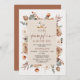 Boho Fall Fall Little Pumpkin Invitation Fall floral and foliage chá de fraldas convite com uma adorável disposição, duas pequenas abóboras, moldura bege e texto moderno de caligrafia. Ideal para alguém que procura um convite elegante para chá de fraldas de outono.