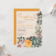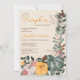 Um pouco de abóbora está a caminho! Celebre sua chá de fraldas nesta coroa fofinha do outono com abóboras cor de laranja, branca e poeirenta, com folhagem de aquarela verde e flores sobre um fundo retrô bege e e elegante tipografia caligráfica moderna.