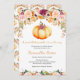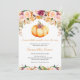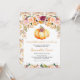 Bem-vindos ao seu pequeno com o calor do outono usando este encantador Convite para Chá de fraldas Floral Pumpkin. Apresentando uma vibrante abóbora de cor laranja com flores de queda suave e verde-azul, este design traz beleza sazonal e encanto rústico para sua celebração. Feita de forma elegante com arranjos florais em tons quentes de outono, perfeita para um chá de fraldas de outono acolhido com flores, honrando a futura mãe. Celebre a chegada da sua doce abóbora em estilo com esta quente design! BBS162
