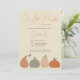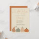 Celebre a chegada da sua abóbora com este charmoso convite para chás de fraldas de outono. Apresentando abóboras adoráveis em tons suaves de outono em cor laranja, lacre, alfinete e bege neutro, este convite adiciona um toque festivo à celebração do seu chá de fraldas. Com cores totalmente editáveis, você pode personalizar a paleta para corresponder ao seu tema de chá, seja para um evento de outono ou Halloween. Perfeito para estabelecer um humor confortável e sazonal!