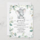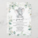 Chá de fraldas de amendoim Dourado de elefante verde Foliage Convite para o chá de fraldas de elefante neutro em sexo doce, apresentando um elefante de cor d'água fofo e uma folhagem verde acinzentada e dourada falsa. Todo o texto é editável. Este pequeno amendoim está no caminho do chá de fraldas de folhagem é uma forma doce de convidar hóspedes para um chá de fraldas temático de elefante neutro em relação ao gênero.
