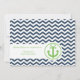 Padrão azul marinho zigzag e âncora verde para um chá de fraldas temático náutico divertido.