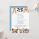Este belo convite para o aspersão de bichos da floresta azul pode ser personalizado com suas informações na tipografia moderna. Projetado por Thisnotme©