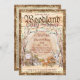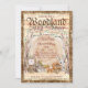 Este convite de festas de chá de fraldas personalizado glamouroso apresenta um tema de bichos-da-água em madeira. O fundo é um padrão de madeira com moldura de diamantes marrom e dourado. Uma ilustração de animais béfilos, incluindo cervídeos, ouriços, esquilos e coelhos coelhos, é ilustrada em frente a um toco de árvore.