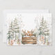 Chá de fraldas Rustic Winter Wonderland Invitation com fatia de madeira de aquarela com animais bonitos de floresta, sotaques de neve e verde festivo. Perfeito para chás de fraldas com temas de férias ou florestas.