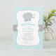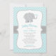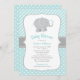 Convite Chá de fraldas de Aqua Moderno e Elefante Cinza