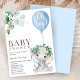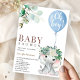 Convite Chá de fraldas de Aquarela de Balão Azul-Elefante