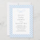 Celebrar a futura mãe com nosso design chá de fraldas azul moderno, simples e elegante — este design apresenta um simples arco desenhado à mão, xadrez azul-aquática estilizada e tipografia elegante.