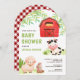 Encantem seus convidados com este elegante tema de fazenda chá de fraldas, convidando com um belo celeiro vermelho e adoráveis pequenos animais. Basta adicionar os detalhes do seu evento neste modelo fácil de usar para torná-lo um convite de tipo único.