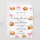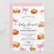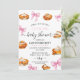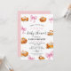 Este convite para queridos captura a combinação perfeita do calor do outono e da doçura feminina. Lindas ilustrações de aquarela de tortas de abóbora sentam-se ao lado de fitas e arcos cor-de-rosa-sino, todas sobre uma paleta de cor suave de pincéis de pincel, cremes e neutrais quentes. A design é ideal para acolher uma garotinha, evocando um sentimento de casa, colheita, e uma celebração sincera.