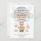 Um ursinho de cor aquosa com chá de fraldas de balão de ar quente em um marrom neutro por sexo e azul com a expressão: "podemos esperar muito". Um estilo giro de tendências para seus convites!