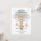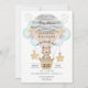 Um ursinho de cor aquosa com chá de fraldas de balão de ar quente em um marrom neutro por sexo e azul com a expressão: "podemos esperar muito". Um estilo giro de tendências para seus convites!