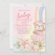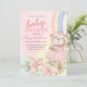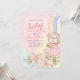 Convite para chá de fraldas de urso balé floral arco-íris de aquarela Garota de aquarela clássica fazendo pose de balé em arco-íris de cor d'água e fundo floral.