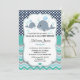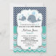 Celebre a chegada de seu novo pacote de alegria com este convite personalizado de Chá de fraldas de Baleia, chique e adorável. Apresentando uma baleia mamãe e uma baleia bebê com bolinhas e fundo cóvron.