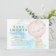 Bela cor d'água, bebês, bichos cor-de-rosa, chá de fraldas de passeio de balão com ar quente apresentando um elefante, girafa, raposa e coelho para uma menina. Sacudir nosso adorável chá de fraldas convidar para ver um céu azul coordenado e uma estrela de volta para um toque especial.