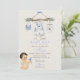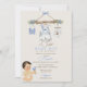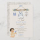 design de chá de fraldas com ramificação de linha de tecido e bebê em marfim e azul.