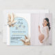 Um belo convite de chá de fraldas com um tema do deserto. A frente deste cartão é embelezada com um buquê de aquarela pintado manualmente e apresenta folhas de palma secas, verde de eucalipto, orquídeas brancas, florais azuis e grama de pampas. Os detalhes do evento são impressos à direita, abaixo, numa combinação de belos escritos, letras manuais e tipografia serif tradicional. No mesmo azul-sonho que as flores está escrito o nome da mãe. Ao contrário, as placas apresentam um design de diamante branco sobre um fundo azul. Perfeito para as estações de verão, outono, inverno e primavera
