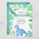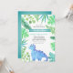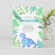 Este encantador convite combina a doçura de um chá de fraldas com a diversão e o entusiasmo dos dinossauros. O design de aquarela apresenta tons de verde e azul, criando uma atmosfera caprichosa e lúdica. O principal foco do convite é uma ilustração encantadora de um dinossauro azul em meio às folhas verde e azul. Essa imagem simboliza a alegria e a antecipação de acolher um novo acréscimo à família. A técnica de aquarela adiciona um toque macio e artístico, fazer este convite realmente especial.