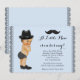 Chá de fraldas de bigode com adorável aper rapazinho bebê vestindo calçados, chapéu e fralda de vestimenta em um fundo azul preto e bebê. Este adorável convite para chás de fraldas de homem pequeno é facilmente personalizado para o seu evento adicionando detalhes do seu evento, estilo de fonte, tamanho de fonte e cor e texto. Você pode excluir o plano de fundo e alterar a cor.
