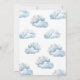 Este belo convite de chá de fraldas mostra um ursinho de pelúcia voando num avião entre nuvens fofinhas.