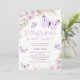 Borboleta Floral Roxa Boho Beija Chá de fraldas Convite Beijos borboletas Roxas bebê deseja convite para chá de fraldas com várias borboletas, flores e grama-pampas. Este chá de fraldas temático da borboleta também apresenta alguns pontos de ouro falsos.