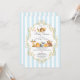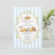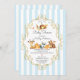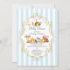 Animais florestais de cor aquosa adoráveis colocados sobre fundo de listras azul e branca com uma estrutura de ouro rico. Disponível em nosso compro para um chá de fraldas ou chá de fraldas neutro para meninas.
