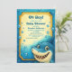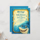 Um design brilhante e alegre com um tubarão feliz, emoldurado por uma borda submarina em azul vívido e amarelos. Perfeito para a celebração de um bebê cheio de vibrações divertidas e oceânicas.