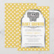 Amarelo e cinza Baby Shower convoca com uma ilustração adorável e afetuosa de elefante para bebês sobre um padrão de bolinhas amarelo e branco. Estes são os convites perfeitos para chás de fraldas neutros em termos de gênero, quando o gênero do bebê vai ser uma surpresa, ou quando a cor favorita da Mamãe a Ser é amarela.