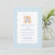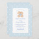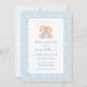 Elegante coelho clássico do coelho vintage no convite para chá de fraldas de garoto bolinhas azul e branco.