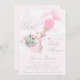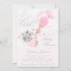 Chamadas de duche de elefante para bebês com elefante adorável menina e balões rosa bonito e borboletas em uma nuvem rosa-rosa e fofinha de fundo. Este convite para chá de fraldas de elefante rosa-claro é facilmente personalizado com os detalhes do seu evento.