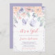 Este doce convite para o chá de fraldas da borboleta pastel é tão fofo! Lindas flores de aquarela, cor-de-rosa e roxo-lavanda. Duas borboletas bonito decoram esta design única e adicionam um toque feminino. A fonte elegante do script de caligrafia pode ser alterada para qualquer cor ou estilo de sua escolha.
