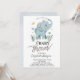O convite para o chá de fraldas bonito apresenta elefante bebê com flores e borboletas. Esses convites para chuveiros de bebês são facilmente personalizados para seu evento simplesmente adicionando seus detalhes.