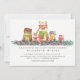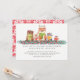 Aquarela inverno animais da floresta natalícia convite para chá de fraldas para uma menina ou um menino e um chá de fraldas neutro em relação ao gênero com uma damáscara vermelha de volta.