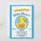 Convite Chá de fraldas de Brinquedo de Pato de Borracha Az