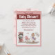 Chá de fraldas cor-de-rosa bonito com ilustração antiquada com animais lindos da floresta e um bebê rosado. Procure convites semelhantes no meu compro, um com esquema de cor azul e outro com verde.