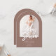 Celebre a chegada do seu pequeno com este belo convite para chás de fraldas. A frente apresenta sua foto em uma forma elegante de arco, criando um toque quente e pessoal. O título Chá de fraldas é escrito na caligrafia moderna do pincel, acrescentando um encanto caprichoso. Abaixo, todos os detalhes do evento são exibidos em um layout refinado. No verso, inclua mais uma foto em forma de arco junto com RSVP e informações de registro. Uma mistura perfeita de estilo e sentimento, este convite dá o tom para uma celebração sincera. Personalize o seu hoje!