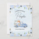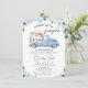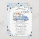 Blue Floral Fall Pumpkin Truck Chá de fraldas Convite para chá de fraldas de outono doce Convite para um bebê rapaz com um caminhão azul carregado com abóboras laranja, azul e branca e um arranjo floral. Este convite para chá de fraldas de abóbora azul é ideal para um chá de fraldas de outono ou outono.