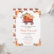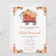 Convite para chá de fraldas russo com um vagão de abóbora, abóboras de laranja e bege e arranjos florais. Perfeito para um chá de fraldas de outono. As palavras podem ser alteradas para se adequarem aos seus próprios detalhes ou requisitos